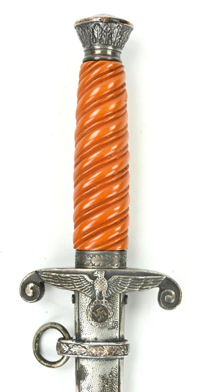 The dagger comes with the original scabbard and has a very nice yellow/orange grip.
