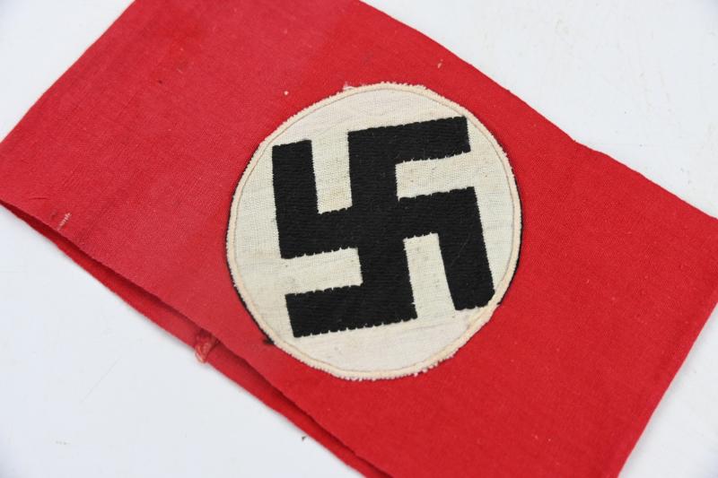 The red linnen made armband comes with an linnen white round circle with a bevo woven black swastika.