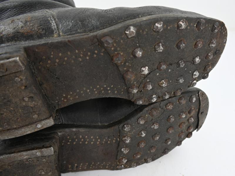 In a very nice condition a matching set of German Wehrmacht Jackboots. The boots comes in a good mannequin size and have still the orginal soles and hubnails attached. A very stunning set of combat jackboots.