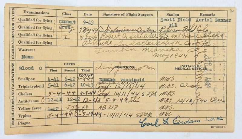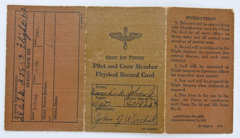 In a very good condition a US Army Air Force WW2 Pilot & Crew Physical Record Card. The card is nicely named and used during WW2.