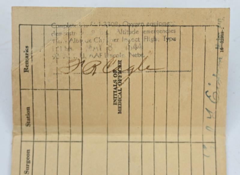 In a very good condition a US Army Air Force WW2 Pilot & Crew Physical Record Card. The card is nicely named and used during WW2.