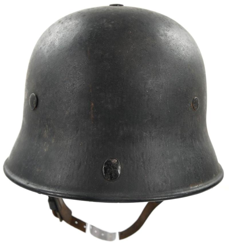 In a very good and stunning condition a German Double Deccal M34 Fire Police Helmet (Feuerschutzpolizei M34 Stahlhelm) constructed in steel with a crimped edge complete with original black paint on the interior and exterior.