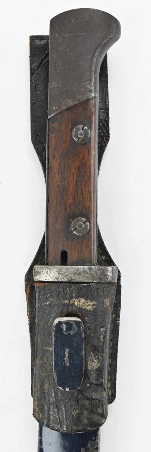 Attached to the bayonet is a leather frog as found.