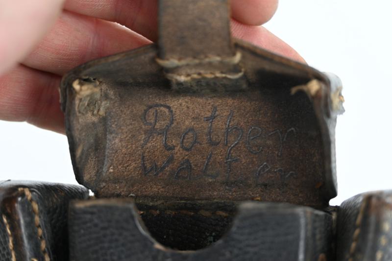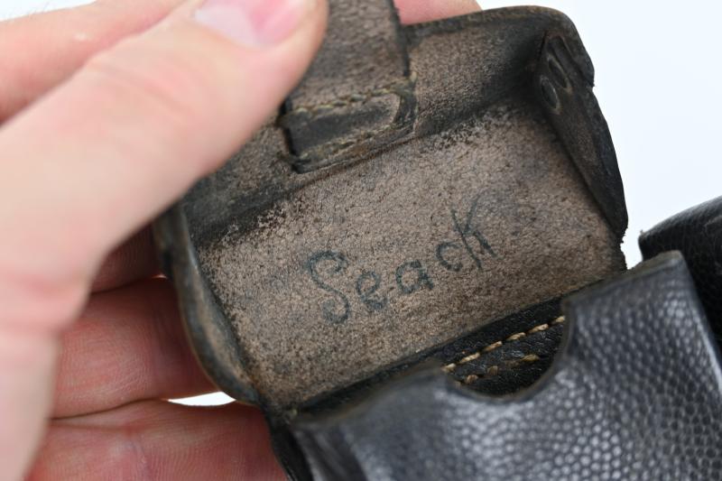 In a combat used condition a German K98 Ammo Pouch. The pouch comes without a visible maker marking. The pouch is complete with all dividers and is in a used condition.