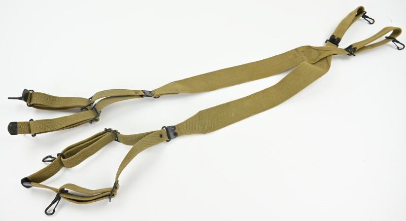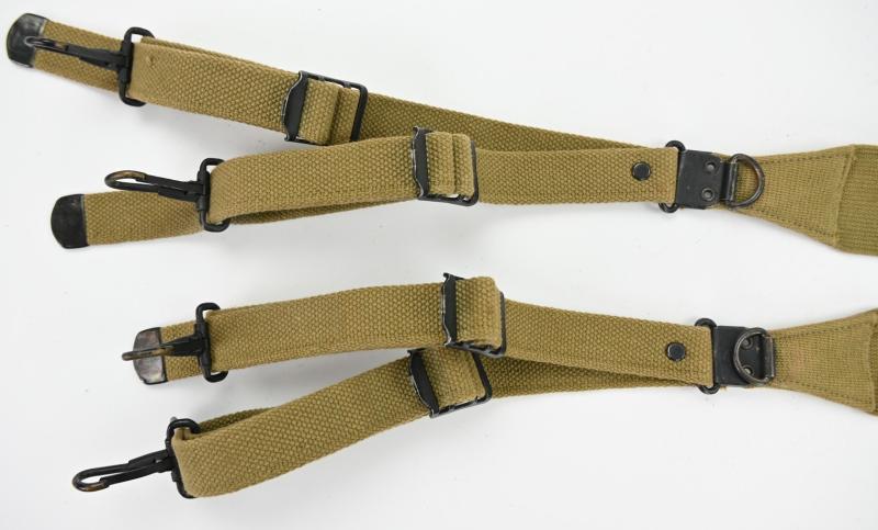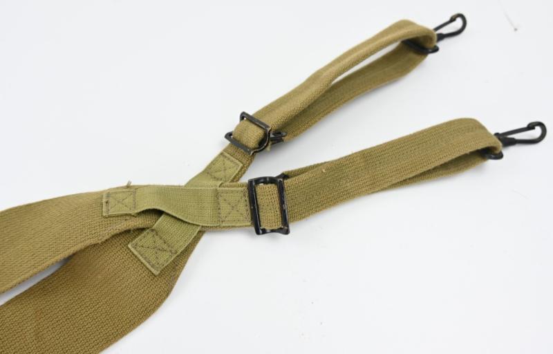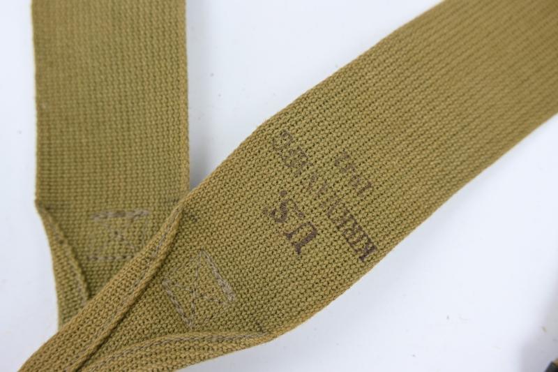 In a very good condition a US WW2 M-1936 pair of suspenders. The suspenders are maker marked and 1942 dated. A very nice example!