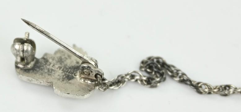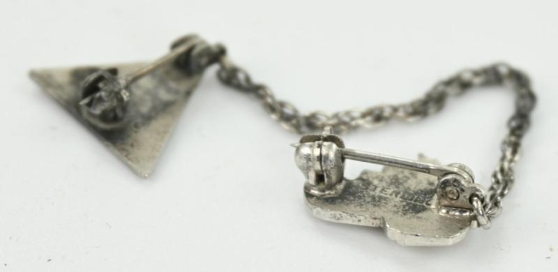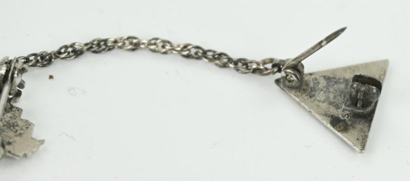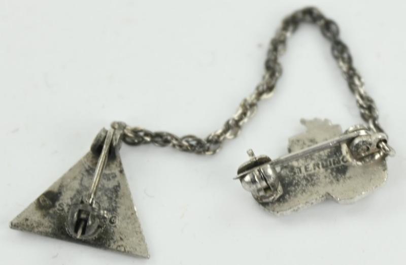 The sterling made and marked sweetheart comes with the triangle 3th Armored division patch in sterling silver and has a chained tank, also made and marked sterling silver, attached.