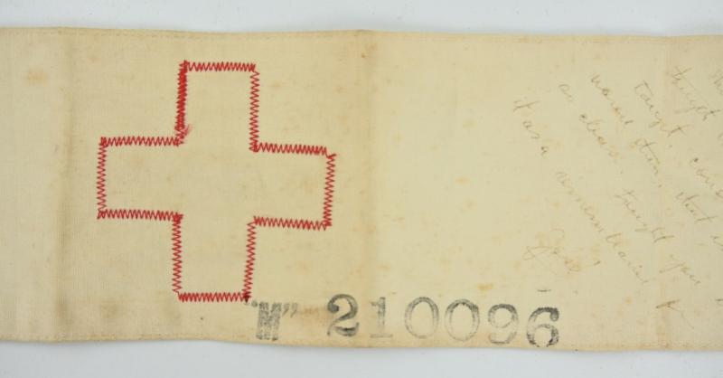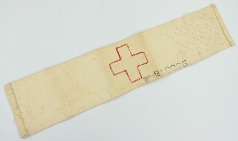 The armband comes with the Red Cross on the white armband and with servicenumber.