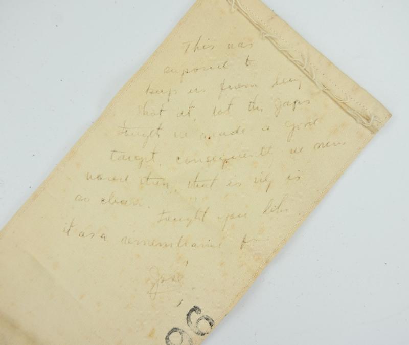 The armband contains a nice written text on the inside that the armband was used by the Japanese as a target.