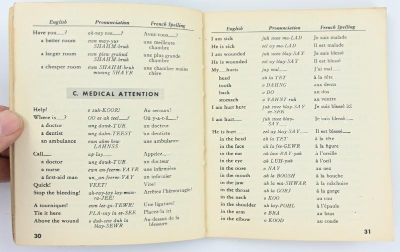 In a very good condition a US WW2 French Phrase Book. The book is nicely dated 1943 and comes in a complete condition.
