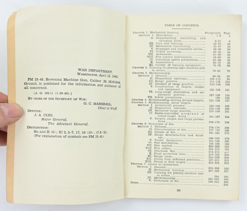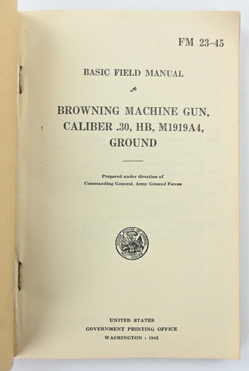 In a very good condition a US WW2 Field Manual FM 23-45 for the .30 caliber Browning Machine Gun. The manual is dated April 1943 and comes in a complete condition.