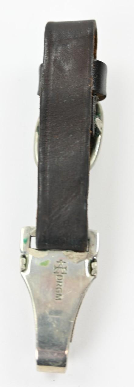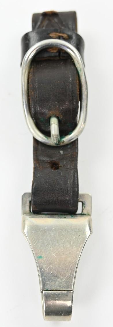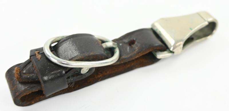 The hanger comes in brown leather and has maker marking on the nickle silver catch by Assmann.