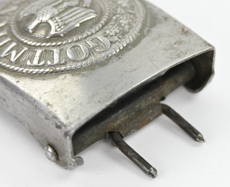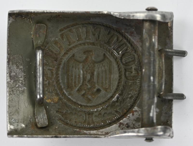 In a used condition a German Wehrmacht beltbuckle. The late war steel beltbuckle is marker marked by Noelle & Hueck from Lüdenscheid and dated 1942.