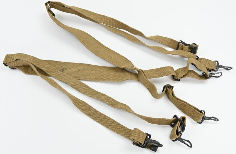 In a stunning mint condition a US WW2 M-1936 pair of Suspenders. The suspenders are British Made and maker marked by Meco and 1943 dated. A very stunning set!