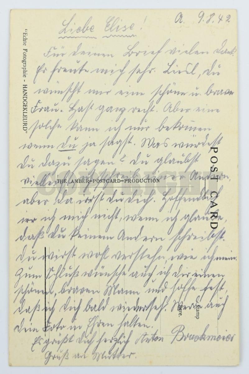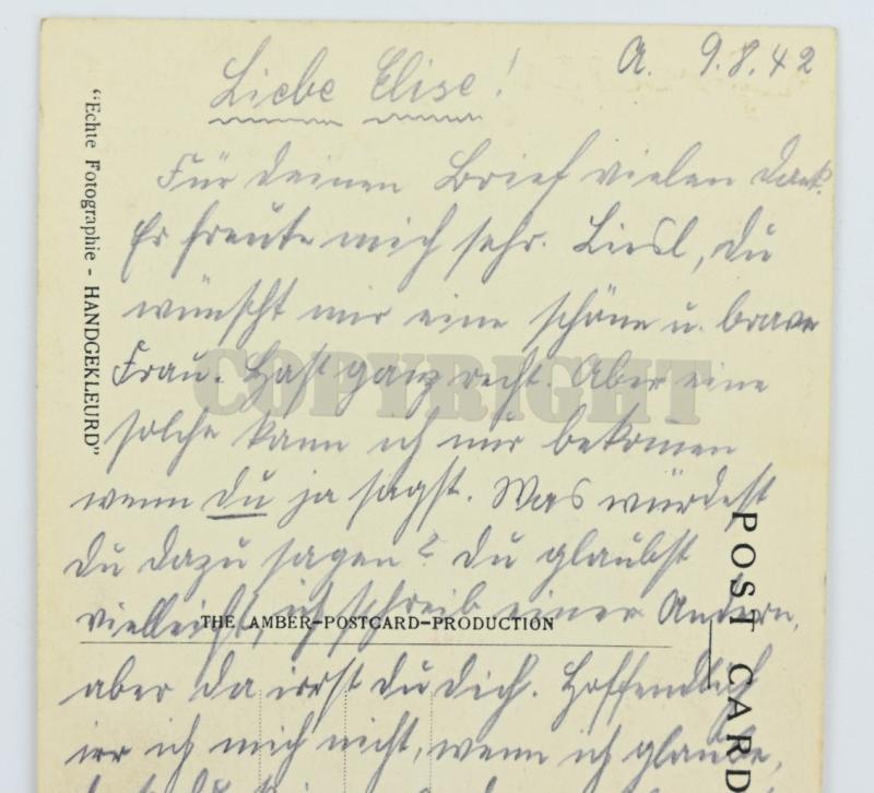 In a very nice condition a German Postcard 'Grusse aus Holland'. The postcard is written on the reverse side and dated 1942.