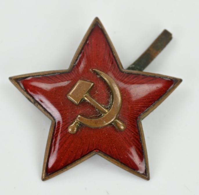 In a very nice condition a Sovjet Russian Army Cap badge Star. The star comes in a size of approx 28mm and has on the reverse side one prong still in functional condition.