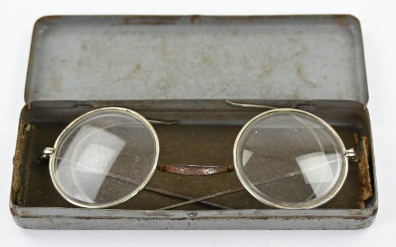 In a very good condition a German Wehrmacht (Heer) Dienst Brille with case. The brill is still inside the case and with original glasses.
