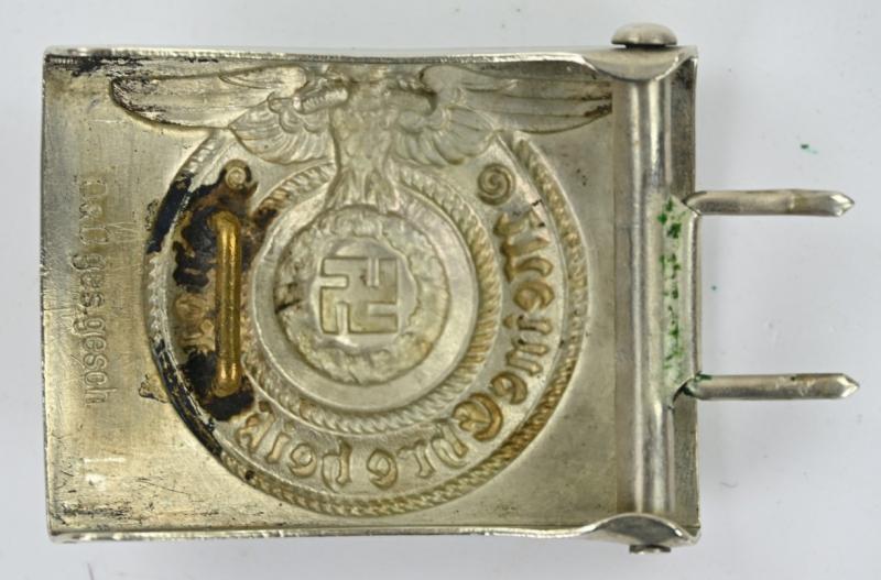 The beltbuckle has stunning nickle-silver Waffen-SS beltbuckle in a great condition.