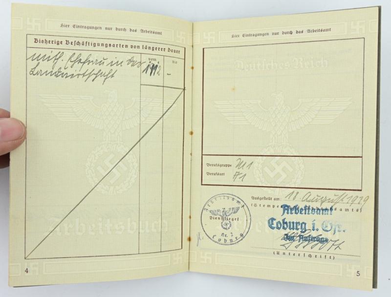 In a very good condition a German Third Reich 'Arbeitsbuch' Workerspass. The pass is dated 1939.
