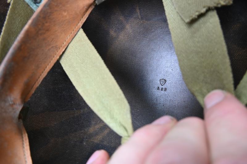 Inside is a very nice high pressure liner made by Firestone complete with all webbing and a named united carr chinstrap to Norman R. Frost with ASN number 31430696 justlike the liner and shell, all named to Norman.