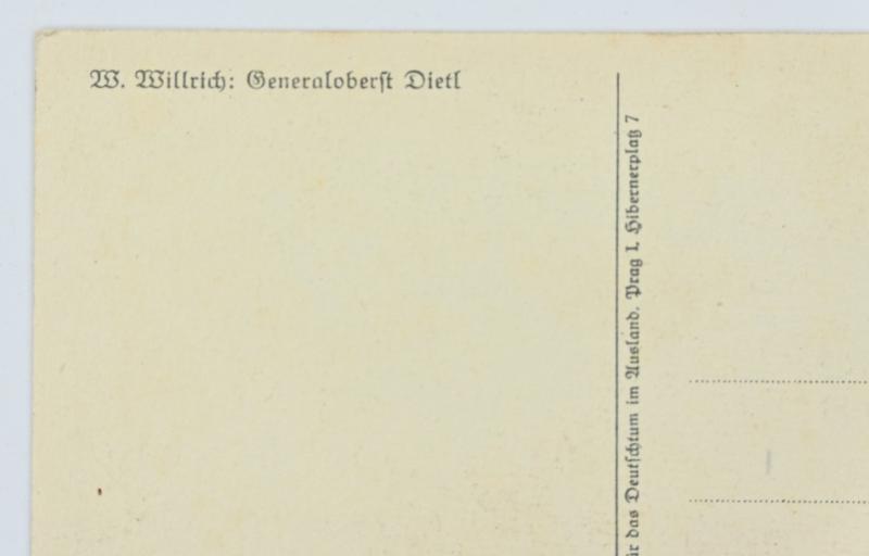 In a very good condition a German Wehrmacht Willrich Postcard of a Generaloberst Dietl. The postcard comes from the Willrich Series.