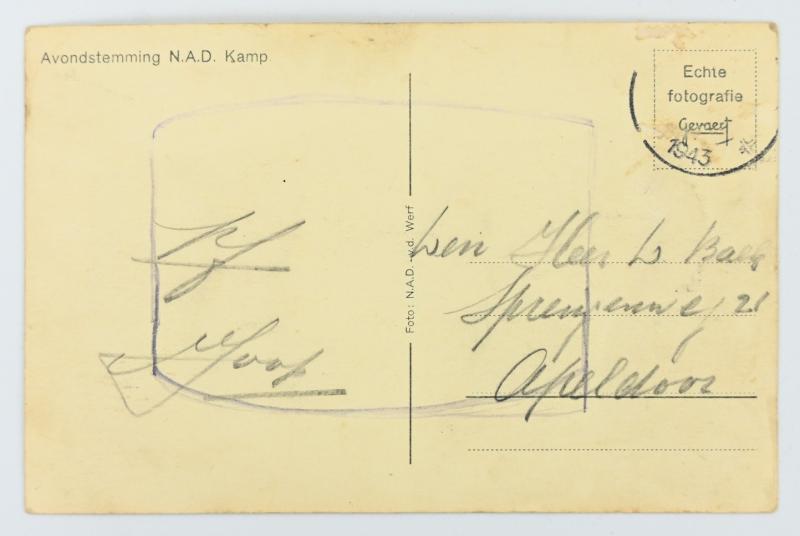 In a nice used condition a Dutch NAD (Nederlandse Arbeitsdienst) Postcard. The postcard is dated 1943.
