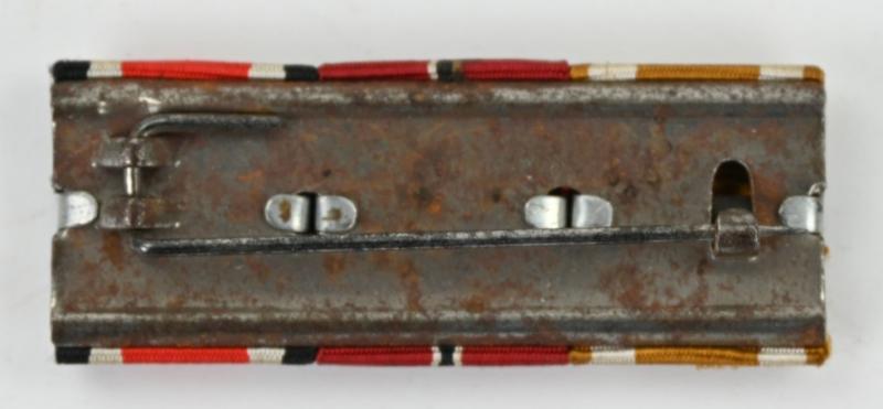 In a very nice condition a German Wehrmacht 3-Piece Medal Ribbonbar. The bar contains the ribbons of the Iron Cross 2nd class,Eastern Front medal and the westwall medal.