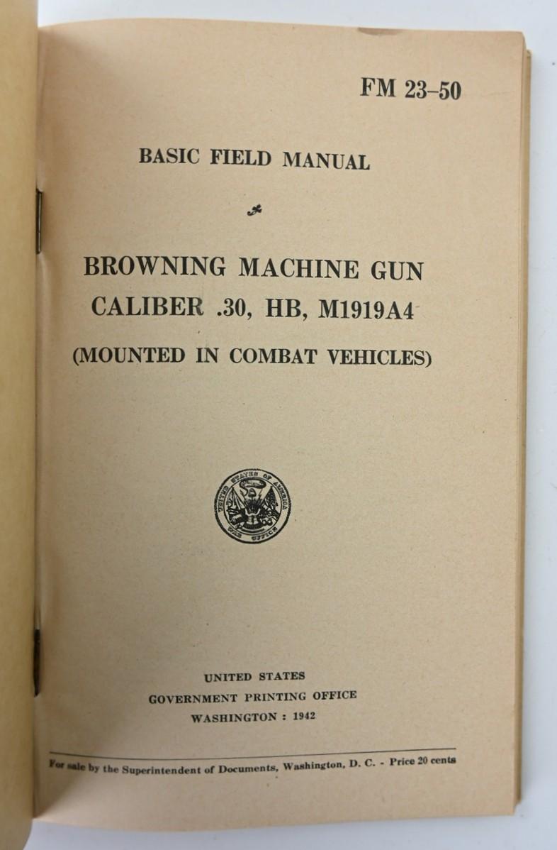 US WW2 Basic Field Manual Browning Machine Gun FM 23-50