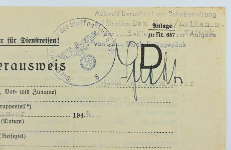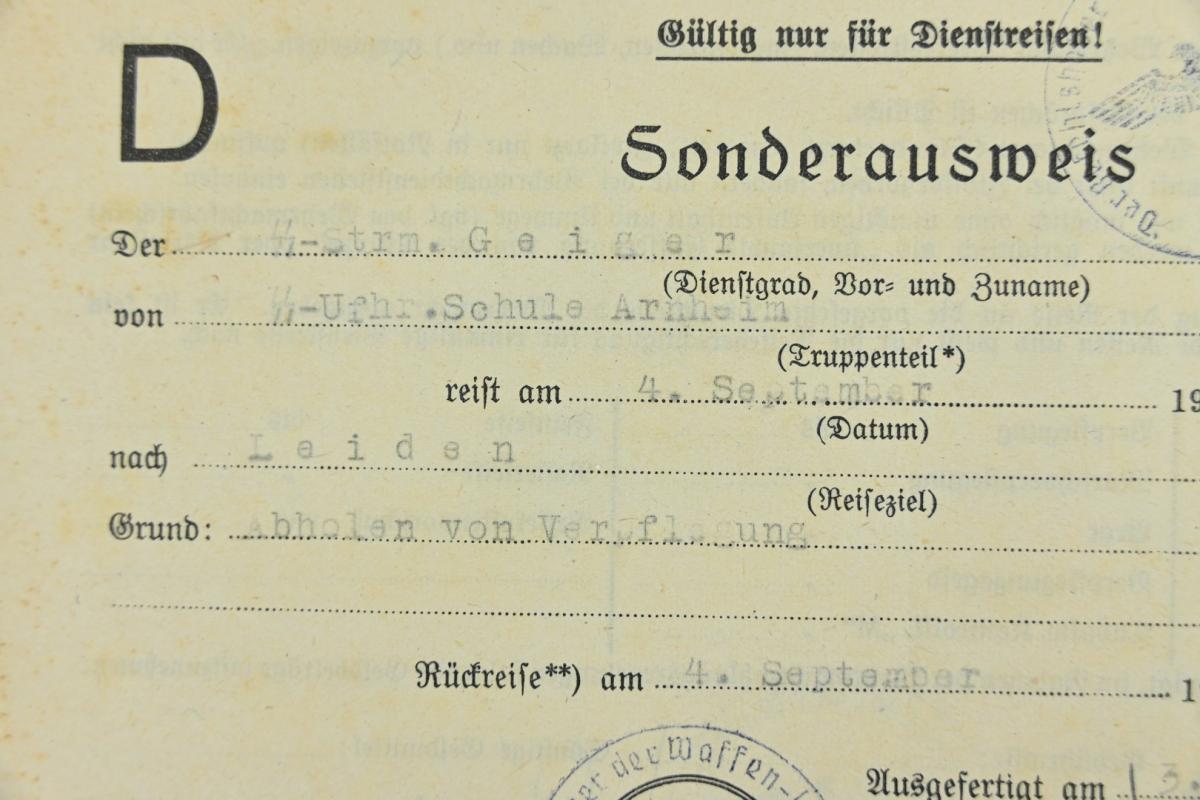 In a very good condition a stunning and hard to find Dutch Waffen-SS Headquarters 'Der Befehlshaber der Waffen-SS in den Niederlanden ' Special Travelcard on the name of SS-Sturmmann Geiger von SS Unteroffizier Schule Arnheim.