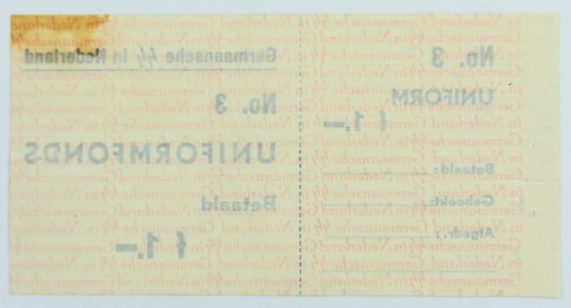 In a very good condition a Dutch Waffen-SS Uniform Collecting Coupon. The coupon has a value of 1 Gulden and could be used for uniform purchasing.