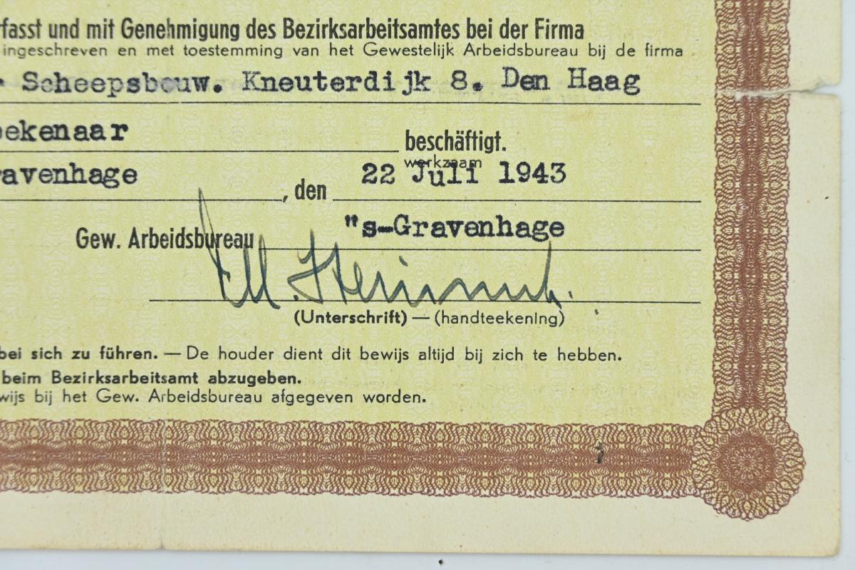 Dutch WW2 Ausweis / ID Card Worker Exception
