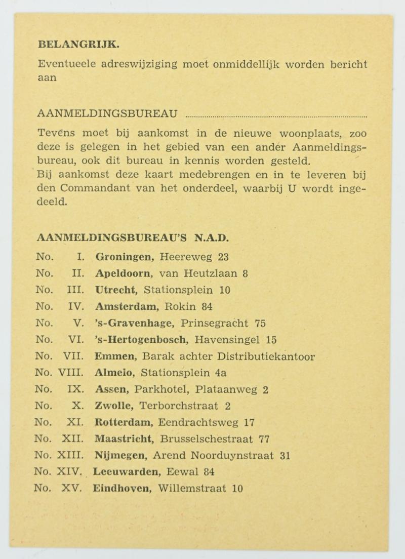 In a very good condition a Dutch NAD (Nederlandse Arbeitsdienst) Member Application Form. The form is dated 1943.