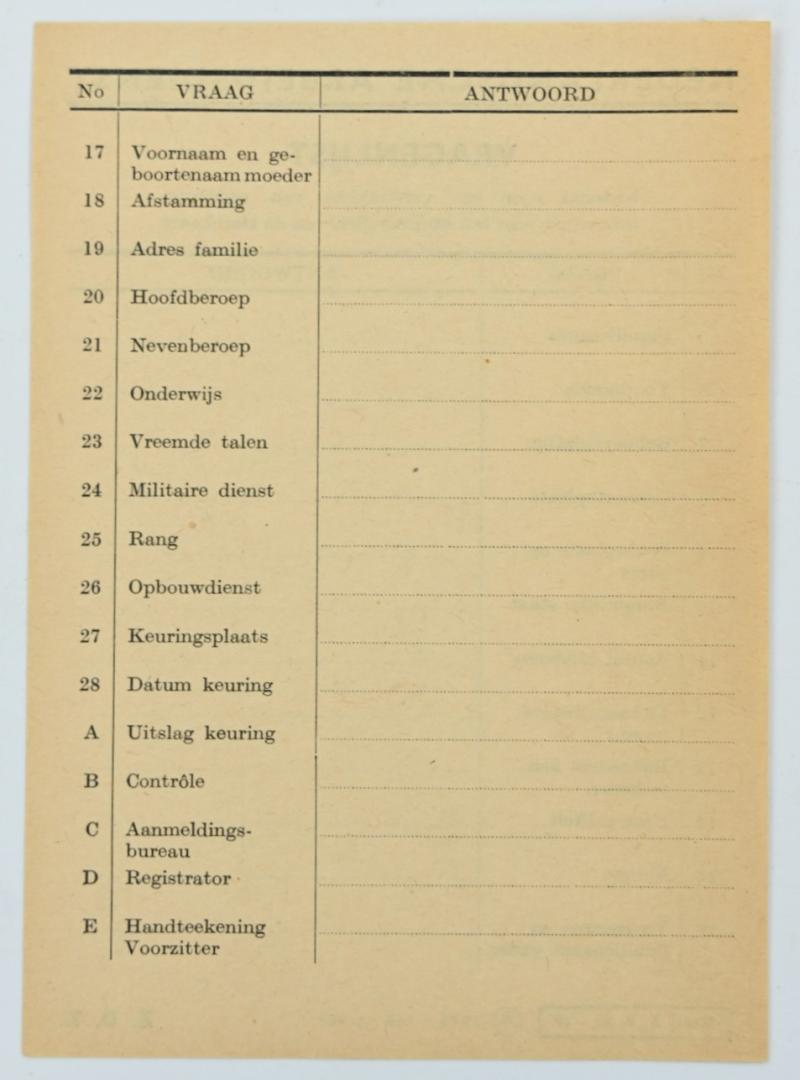 In a very good condition a Dutch NAD (Nederlandse Arbeitsdienst) Member Application Form. The form is dated 1943.