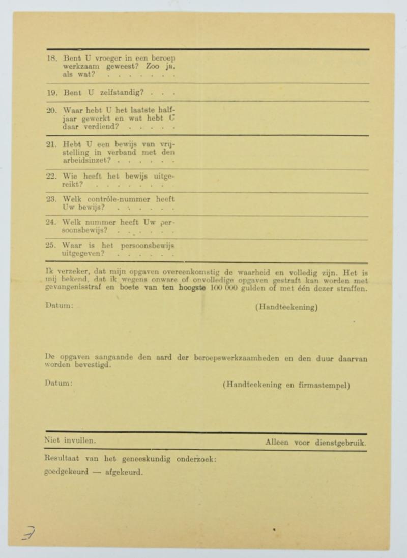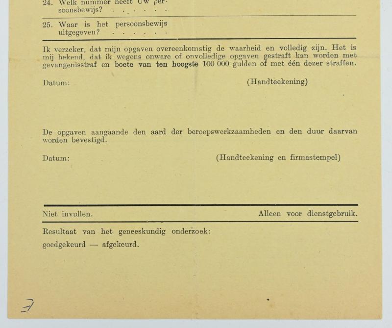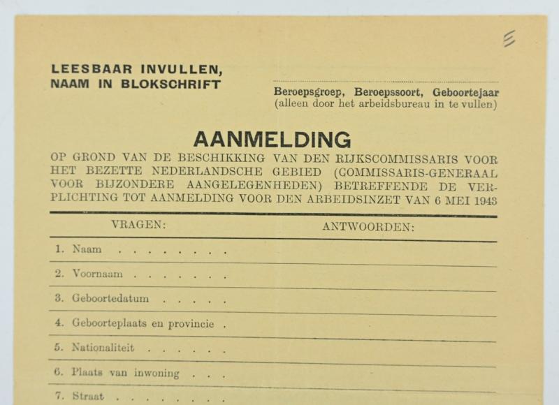 In a very good condition a Dutch NAD (Nederlandse Arbeitsdienst) Member Application Form The form is dated 1943.