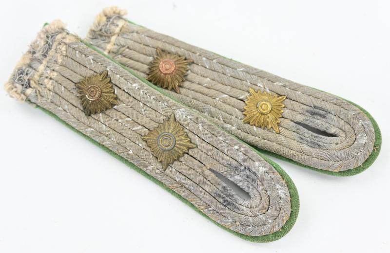 In a nice used condition a German Wehrmacht Officer Shoulderboard set. The set comes in the rank of Hauptmann and in the light green branchcolor of the Panzer Grenadier troops. A very stunning set.