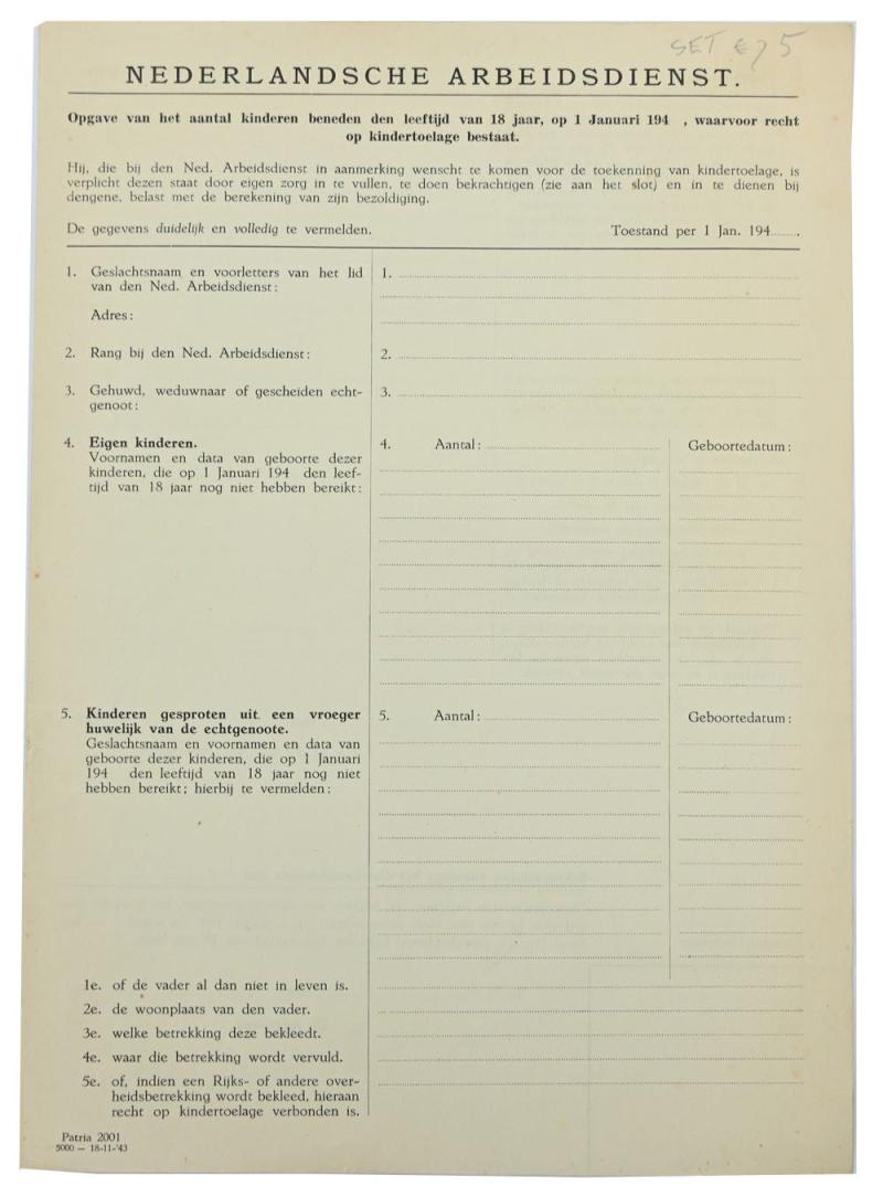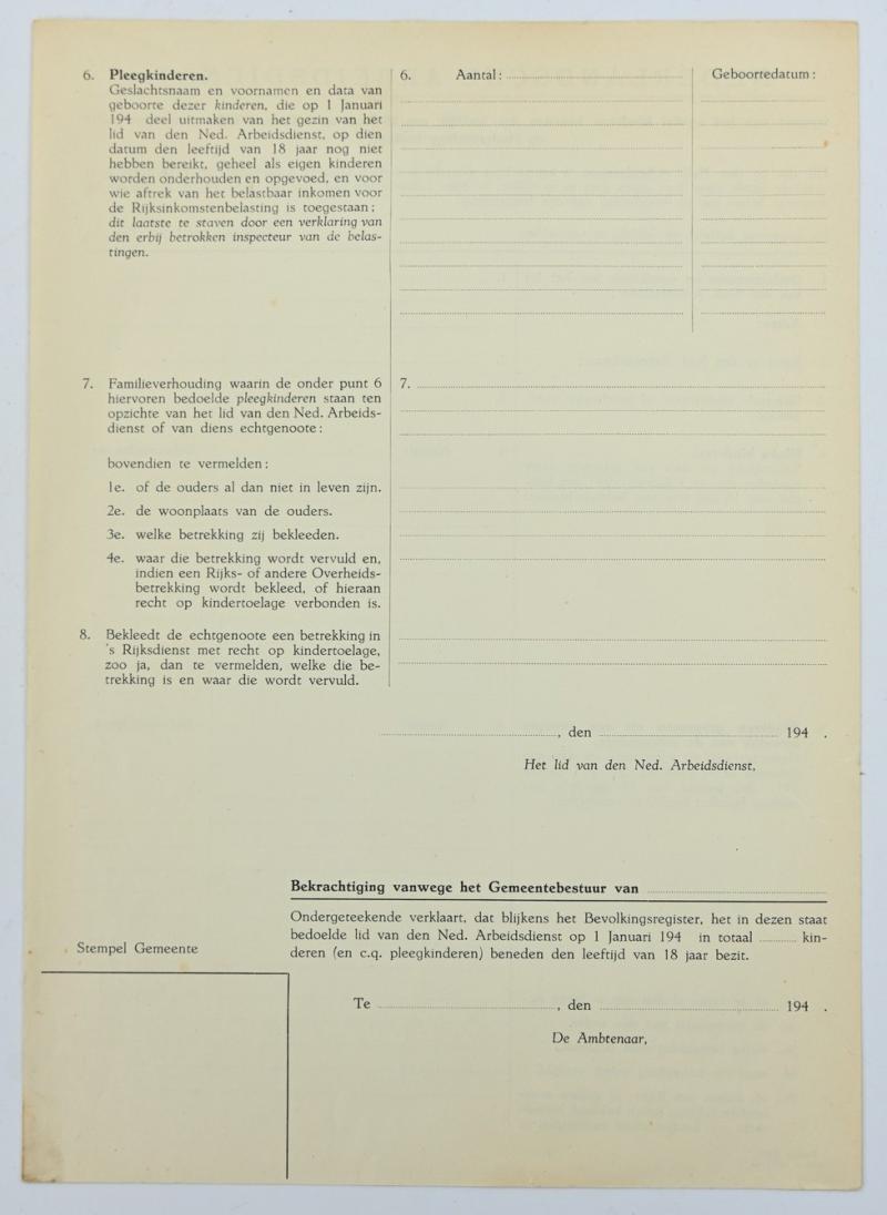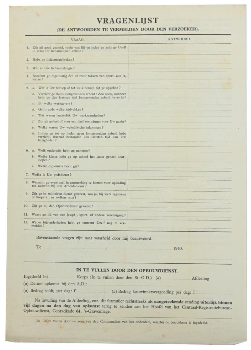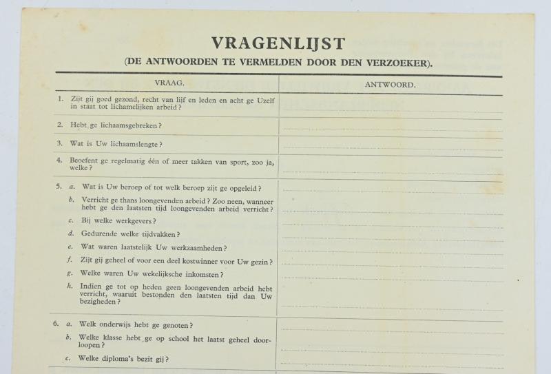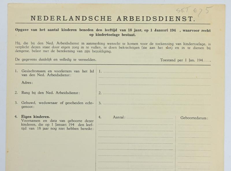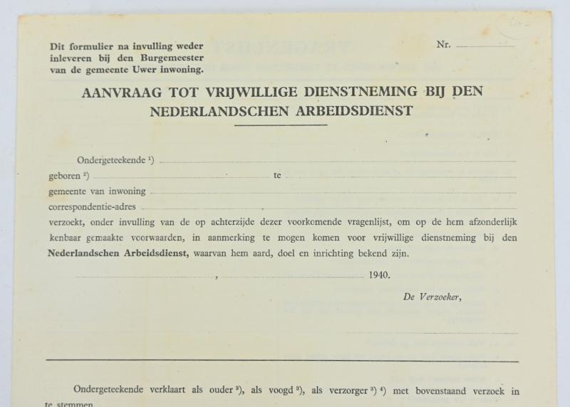 In a very good condition a Dutch NAD (Nederlandsche Arbeitsdienst) Enlistment Paper. The papers contains 2 forms!