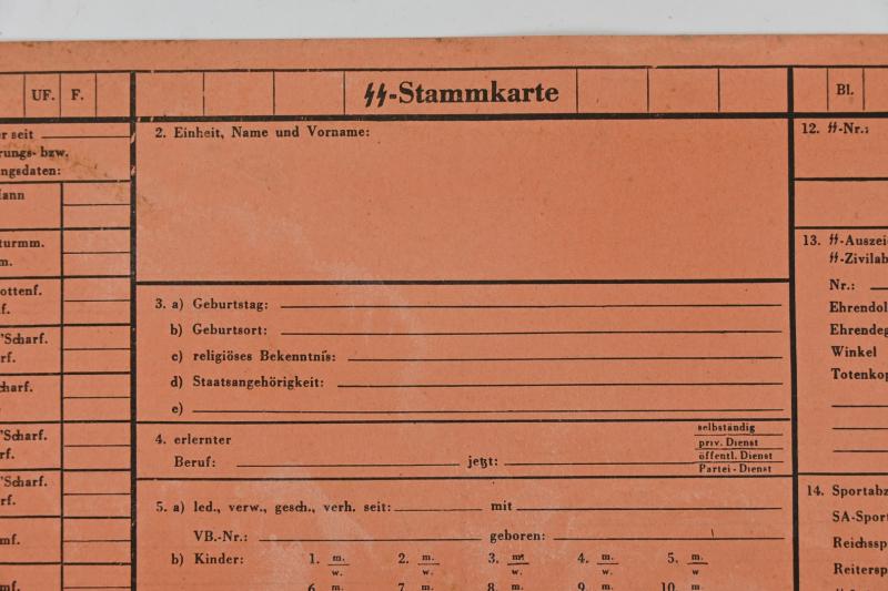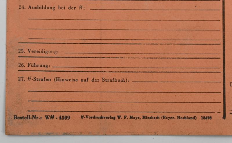 In a never used condition a German Waffen-SS 'Stammkarte' Personal Record File. These files were used for information of each SS soldier.