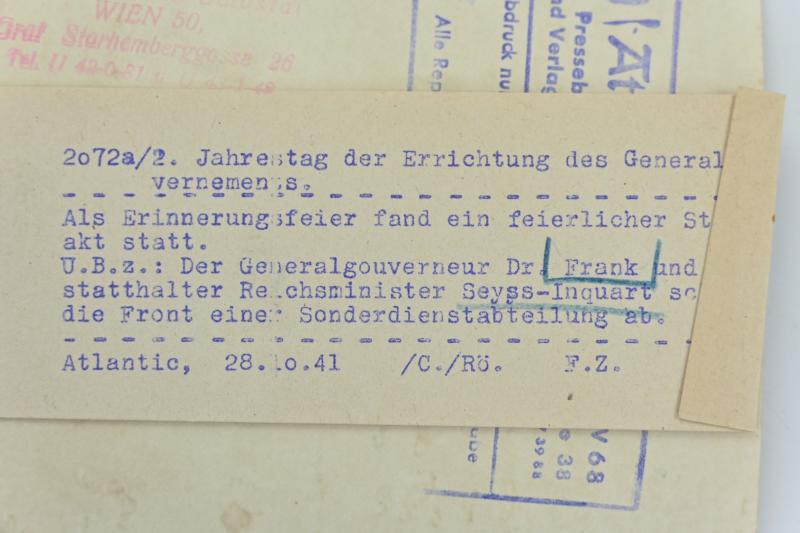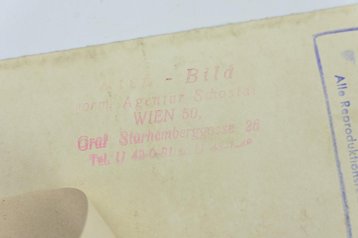 In a very nice condition a German Press Photo Seyss-Inquart/Dr. Frank inspecting the troops in 1941. The photo comes in a size of 10x15cm.