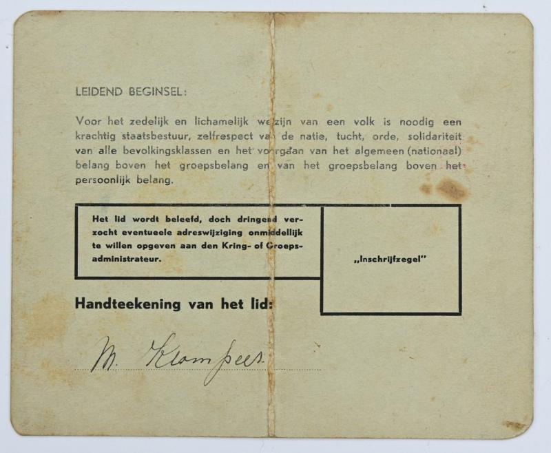 In a very good condition a Dutch NSB Membercard of 1938. The card is on the name of a member from Eindhoven Holland.