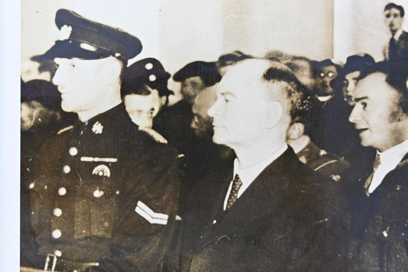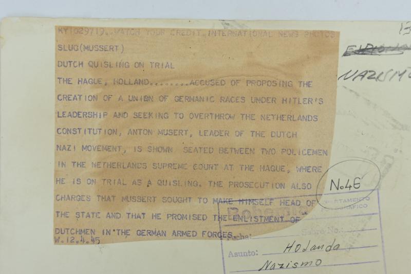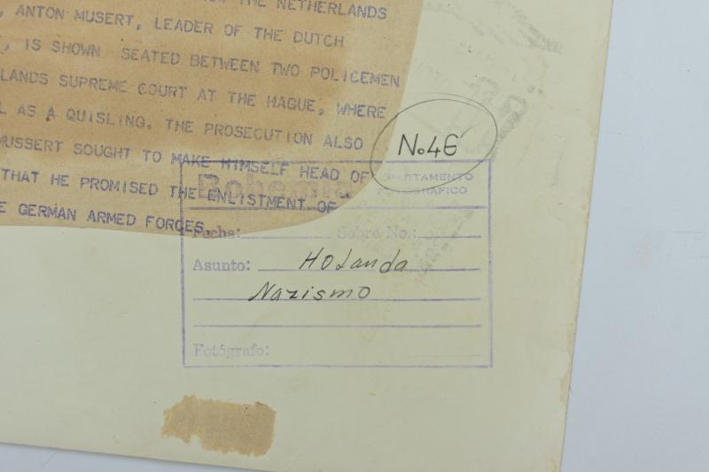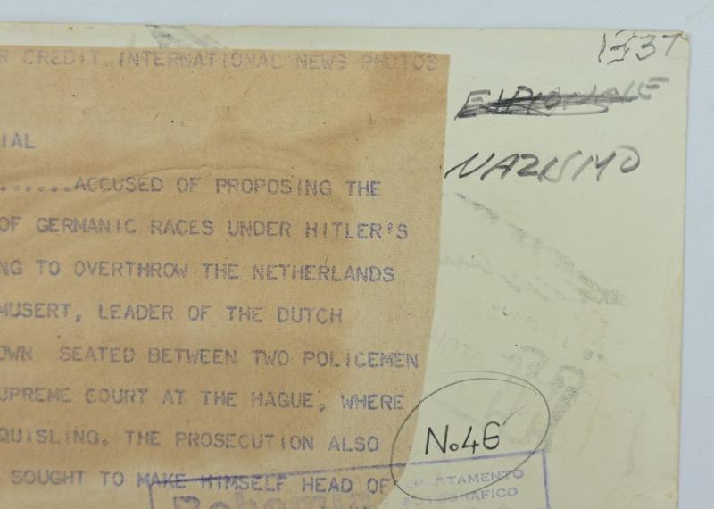 In a nice condition a Dutch Press Photo 'NSB Leader Mussert on Trail'. The picture is taken on april 1945 and comes in a size of 13x18cm.