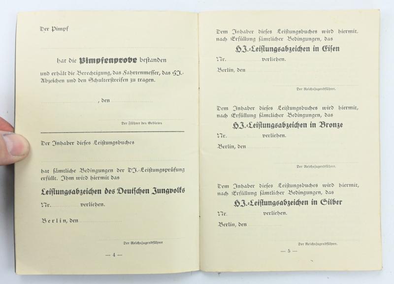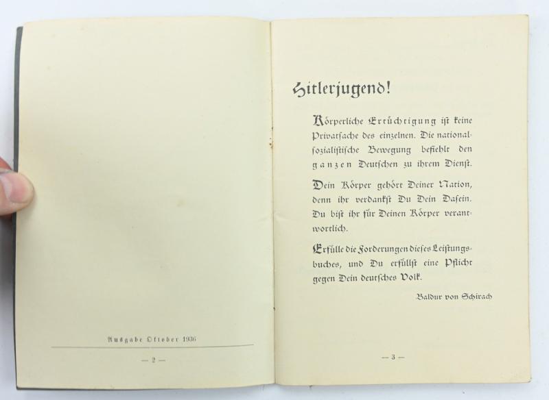 In a very good condition a stunninge German Hitler Youth Leistungsbuch The book is dated 1936 and comes with some sport records written inside.