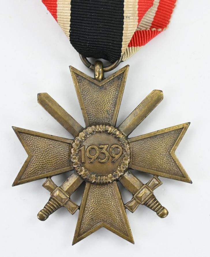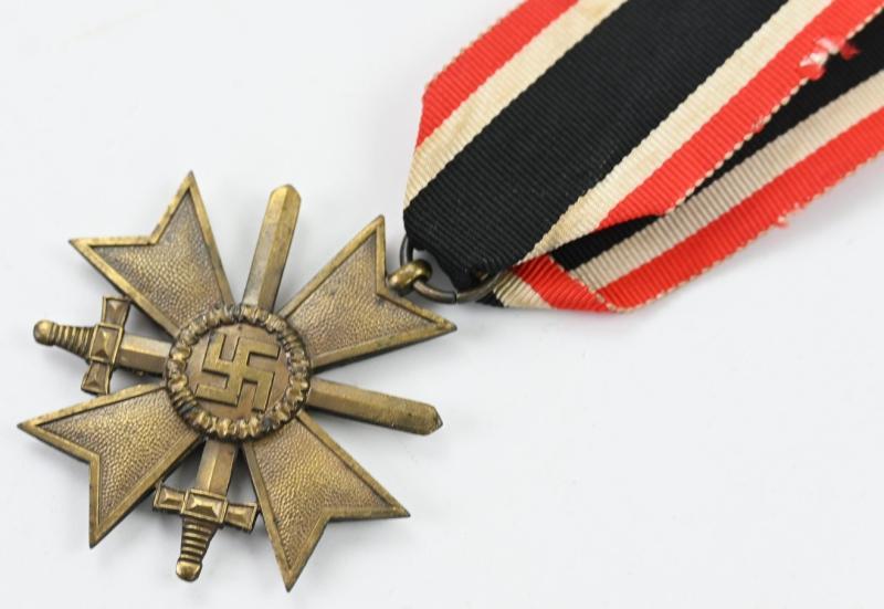 In a very nice condition a German WW2 War Merit Cross 2nd Class with Swords. The cross comes without maker marking but with the original ribbon.