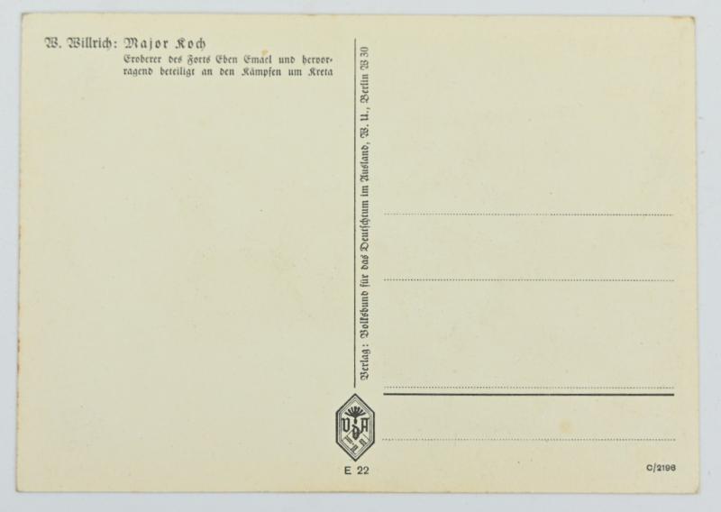 In a very good condition a German Luftwaffe Fallschirmjager Postcard of Major Koch. The postcard is form the W.Willrich serie.