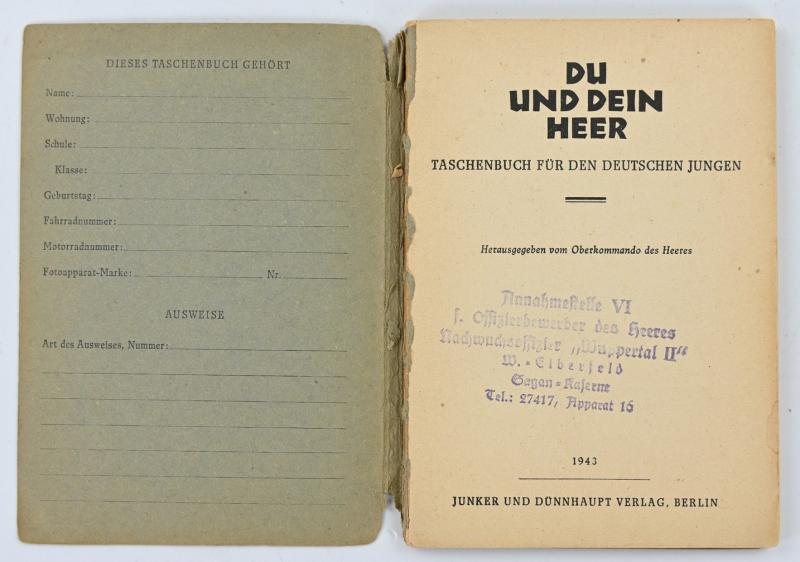 In a very nice condition a German Hitler Youth Booklet 'du und dein Heer'. The booklet is dated 1943 and comes with various Heer regulations inside.