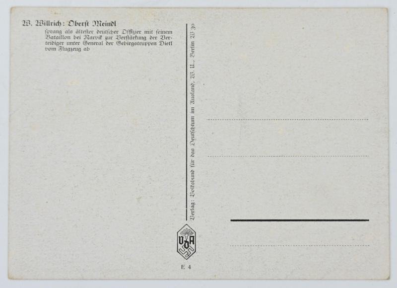 In a very nice condition a German Wehrmacht Postcard 'Oberst Meindl' The postcard comes from the willrich series.