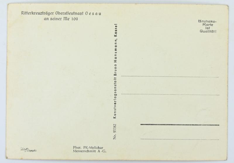 In a very good condition a German Knight's Cross Recipient Postcard of Luftwaffe Major Oesau, Recipient of the Knight's Cross of the iron cross with Swords and Oakleaves.
