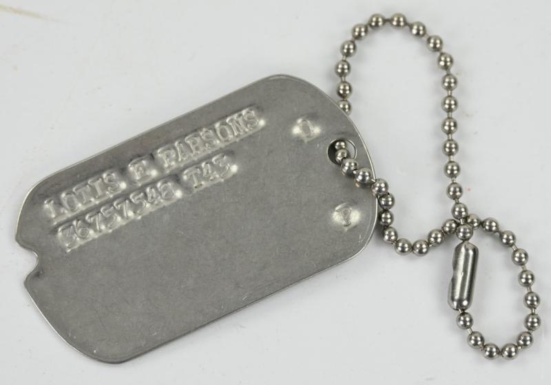 In a very nice condition a US WW2 Dog-tag on the name of 'Lotis Ewing Parsons' Lotis was a member of the HQ & HQ Squadron ASC USSTAF AAF-390 (390th bomb group)