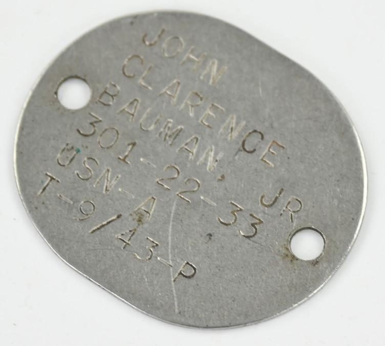 In a very nice condition a USMC WW2 Dog-Tag on the name of ''John C. Bauman Jr.'