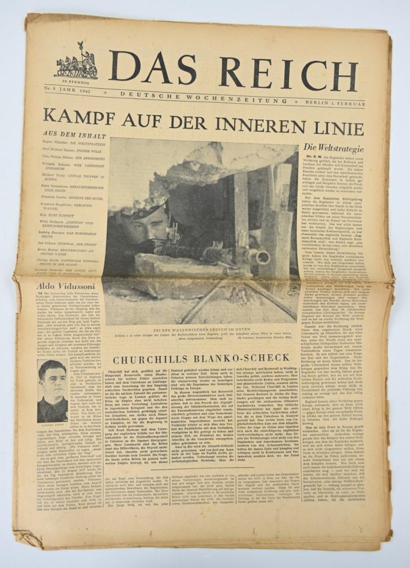 In a nice used condition a German Newspaper “Das Reich” dated 1 February 1942 The paper comes with a very nice header.