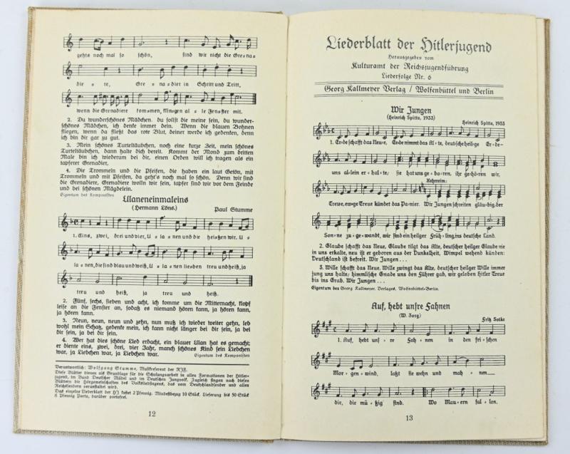 In a very nice condition a German HJ Songbook 'Liederblatt der Hitlerjugend'. The book comes in a complete condition and is dated 1935.
