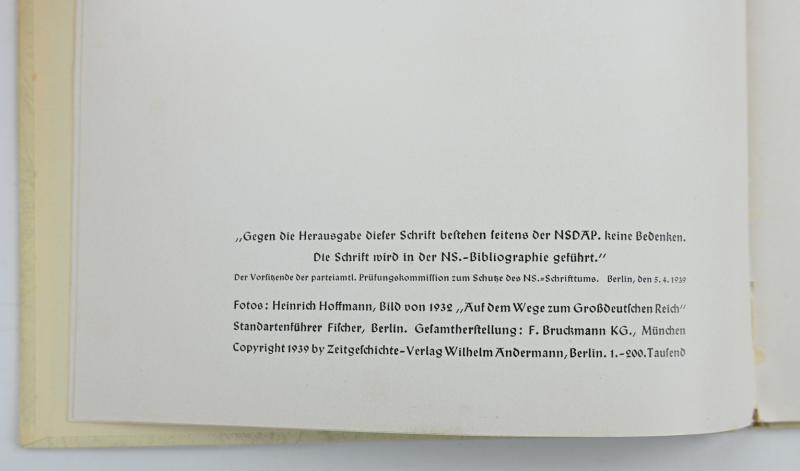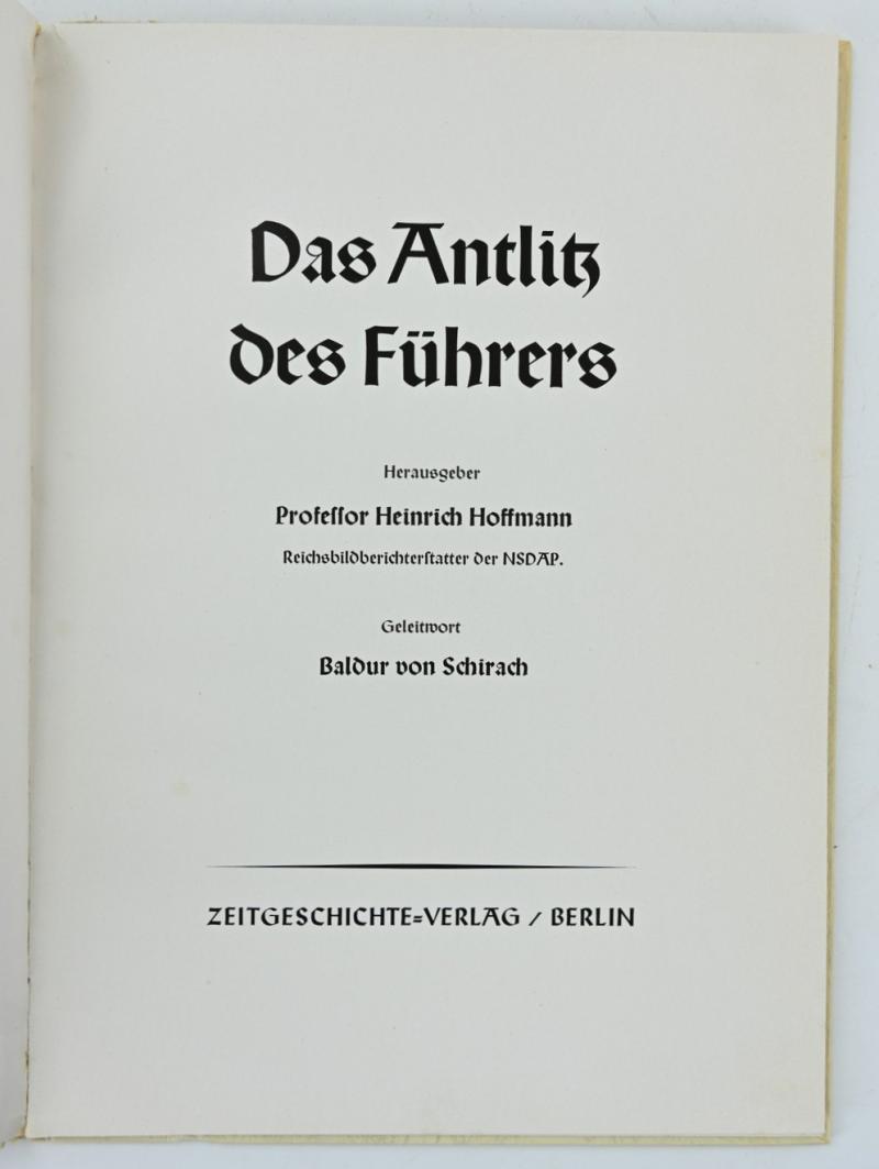 In a very good condition the German Book 'Das Antlitz des Führers", Hitler's Portraits PhotoAlbum. Issued by Professor Heinrich Hoffmann. Reichsbildberichterstatter der NSDAP. Geleitwort Baldur von Schirach. Zitgeschichte Verlag / Berlin 1939